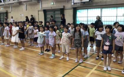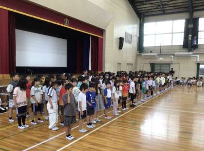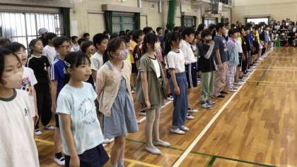 体育館いっぱいに子どもたちの明るく張りのある歌声が響き、歌う楽しさを味わうことができました。