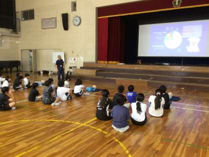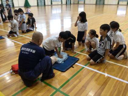 7月2日 応急手当講習会(5年生) 公開日 2025/07/02 更新日 2025/07/02 校長室から 5年生が、応急手当講習の救命入門コースを受講しました。 消防署の方、救急サポーターの方にお越しいただき、応急手当の大切さや心肺蘇生の仕方を学びました。また、実際に人形を使って胸骨圧迫の実習をしました。グループでAEDの使い方も学習しました。