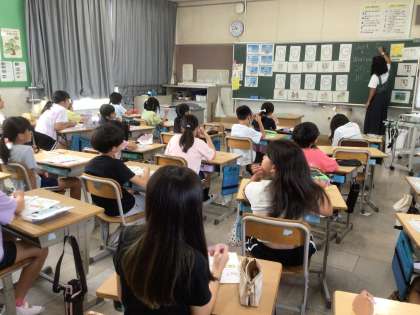 7月3日 外国語の学習(4年生) 公開日 2025/07/03 更新日 2025/07/03 校長室から 4年生が、外国語活動で「What time is it?」の学習に取り組んでいます。 ALTのキーン先生のお話を聞きながら、何時かな、と考えていました。