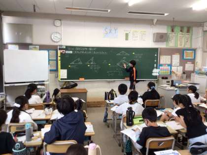 5年生の算数の学習の様子です。 それぞれで教え合いながら、学びを深めています。
