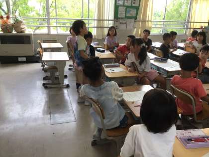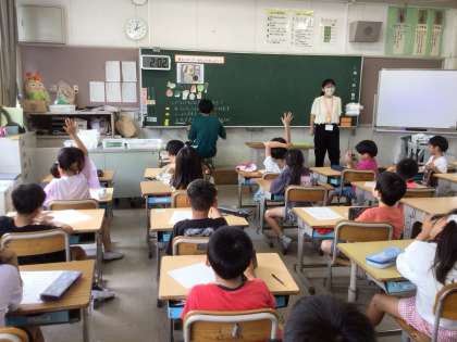 7月10日 食の学習(2年生) 公開日 2025/07/10 更新日 2025/07/10 校長室から 2年生は、昨日、栄養教諭の方々にお越しいただき、食の学習を行いました。 内容は「野菜のパワーを調査しよう」です。 子どもたちは、学校の花壇や植木鉢で夏野菜を育てているので、野菜のパワーをよく知っていました。 先生から「給食には、みんなの体のために毎日たくさんの種類の野菜を入れています。野菜が苦手な子も、少しずつでもよいので食べてほしいです」とお話していただきました。