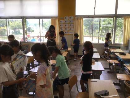 外国語では、練習した英語を使って、自分の好きなことをペアで伝え合っていました。