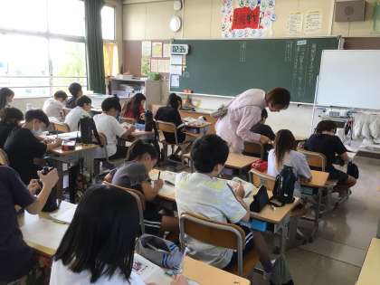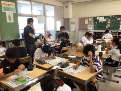 5年生は、国語で新聞記事を読み比べています。同じ内容でも、書き手によっていろいろな書き方があることを読み取っていました。