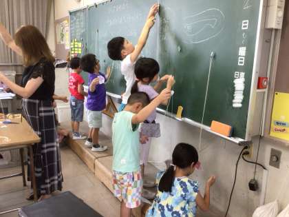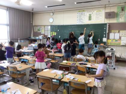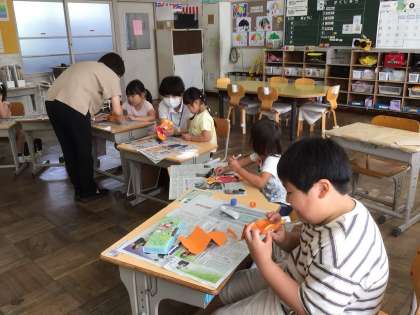 1年生、6組の子どもたちが工作に取り組んでいます。
