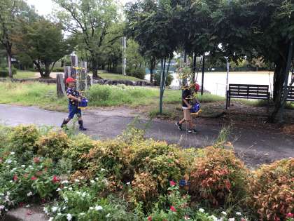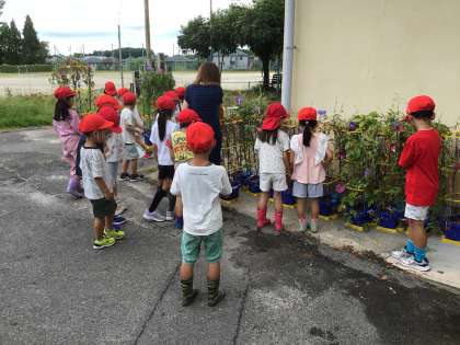 天気が回復したので、1年生の子どもたちが自分たちで元の場所に戻しました。重たい植木鉢をしっかり持って運ぶ姿が頼もしく感じました。