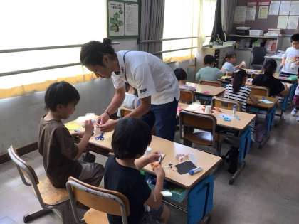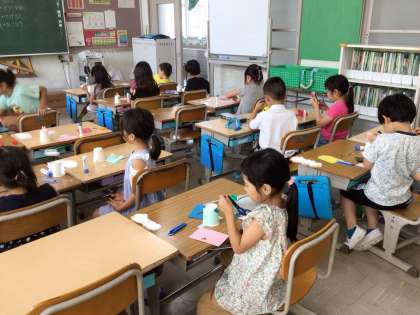 9月11日 図画工作(1年生) 公開日 2025/09/11 更新日 2025/09/11 校長室から 1年生が、図工で「紙コップロケット」を作っています。 身近にある材料を使って、飾りや動きを工夫して作成していました。 動かして楽しんでいました。