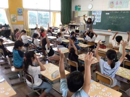 9月12日 外国語活動(3年生) 公開日 2025/09/12 更新日 2025/09/12 校長室から 外国語では、何が好きかを尋ねる活動で、ALTのキーン先生の英語を聞き取って、foodやsportsなど自分の好きなもののカードを選んで発表していました。