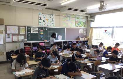 5年生は、総合的な学習で追究しているパラアスリートについて、英語で紹介してみようと取り組んでいます。英語で分かりやすく、楽しく紹介するために、リアクションについて考え合っていました。
