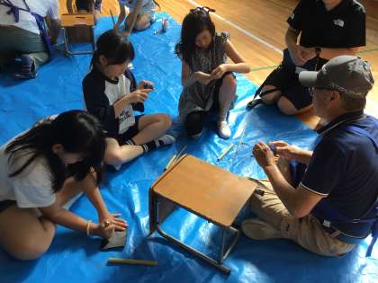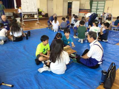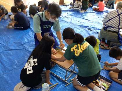 4年生が、ものづくりサポーターの皆さんに支援していただき、竹でっぽうを作りました。