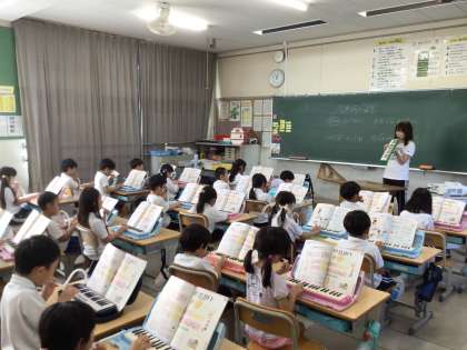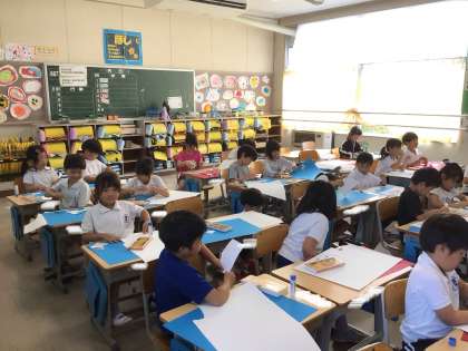 9月26日 学習の様子(1年生) 公開日 2025/09/26 更新日 2025/09/26 校長室から 算数では、「おおきさくらべ」をしています。どちらが多いかを水を使って比べていました。 図工では、「やぶいたかたちからうまれたよ」の学習で、紙をやぶいた形から想像して台紙に貼りつけていました。 音楽では、鍵盤ハーモニカでドレミファソの音を順に弾いたり、元気な声で歌ったりしていました。