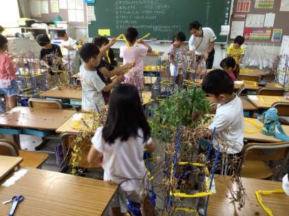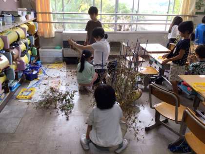 10月1日 生活科(1年生) 公開日 2025/10/01 更新日 2025/10/01 校長室から 1年生が、5月から大切に育ててきたアサガオのつるでリースを作ります。 今日は、互いに手伝い合いながら、植木鉢から丁寧につるを取り外していました。 また、植木鉢を教室へ運んだときに落ちた砂や葉の掃除もしっかりできました。