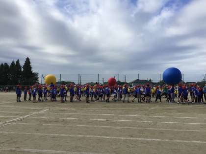 運動会、第1部は2年生と5年生が競技や演技を行いました。