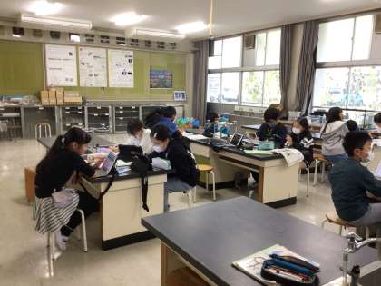 理科では「流れる水のはたらき」について、学習用タブレットを使ってまとめをしていました。