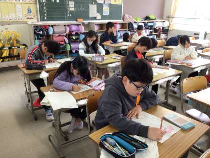 11月13日 学習の様子(2年生) 公開日 2025/11/13 更新日 2025/11/13 校長室から 2年生は、算数で「かけ算」の学習に取り組んでいます。今日は7の段の仕組みを考えながら、九九を唱えていました。 生活科では、探検でお世話になった施設の方にお手紙を書いていました。 国語では「かさこじぞう」を読み、感じたことを書いて、話し合っていました。