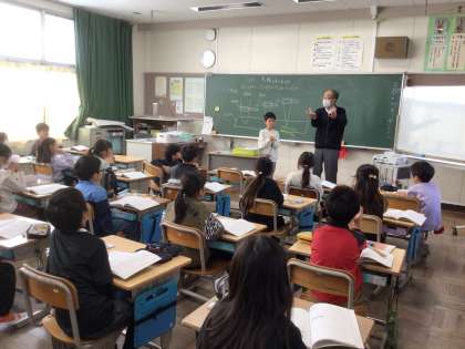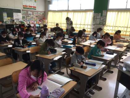 総合的な学習では、地域の施設や行事などを調べています。地域の方に質問したいことを自分で考えてまとめていました。