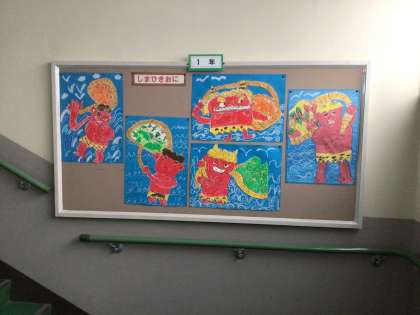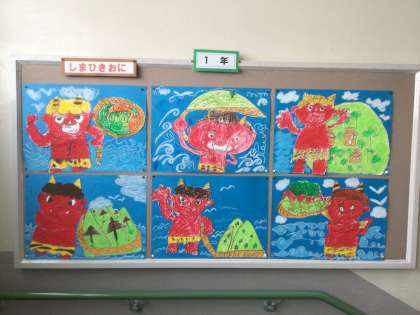 1年生は、図工の学習で「しまひきおに」のおはなしの絵を描きました。