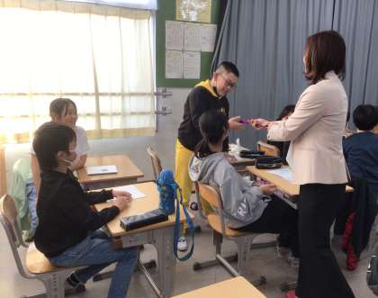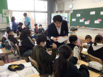 子どもたちに、ご自分の体験やチャレンジの大切さを語ってくださいました。