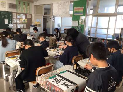 今日から3年生以上の各学級に2回ずつ、書道ボランティアの先生方が指導に来てくださっています。