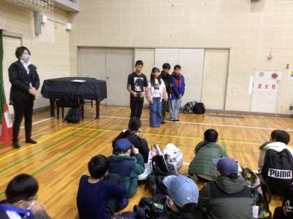 12月3日 修学旅行2日目7 公開日 2025/12/03 更新日 2025/12/03 学校行事 京都からの行程が渋滞などもなくスムーズで、予定通り学校に到着できました。 体育館で帰着式を行い、子どもたちは元気に到着のあいさつをしました。 保護者の皆様、お迎え、誠にありがとうございました。 6年生の皆さん、修学旅行の思い出をご家族にたくさんお話してください。そして、ゆっくり身体を休めてください。