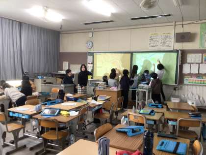 12月8日 学習の様子(4年生) 公開日 2025/12/08 更新日 2025/12/08 校長室から 4年生は、子どもたちで企画運営した学年レクリエーションを楽しんでいました。学年みんなで「だるまさんがころんだ」や「けいどろ」を行ったそうです。 総合的な学習では、これまで学んだ「防災」について、グループごとに考えながらまとめていました。
