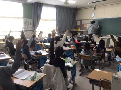 4年生は、総合的な学習で、これまで学んできた防災についてまとめています。グループごとにテーマを決めて取り組んでいます。