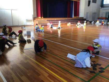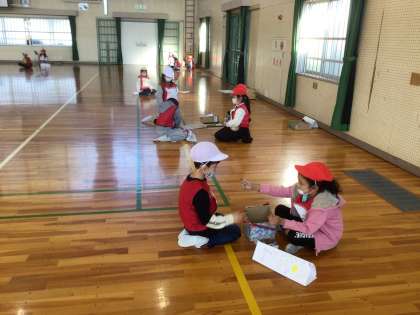 12月9日 こども園との交流会2(1年生) 公開日 2025/12/09 更新日 2025/12/09 校長室から 自分たちで工夫を重ねて作った秋のおもちゃを使って、園児さんを楽しませようとがんばる1年生の子どもたち。 とても頼もしく感じました。