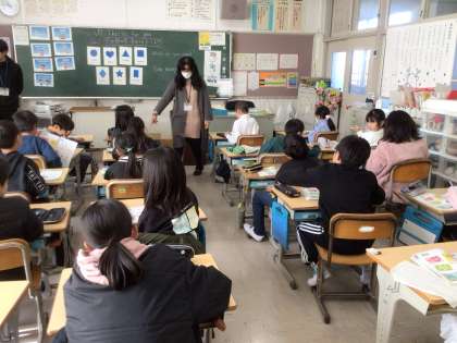12月12日 外国語活動(3年生) 公開日 2025/12/12 更新日 2025/12/12 校長室から 3年生は外国語で「This is for you.」の学習をしています。 ALTの先生と一緒に「How many〜」の尋ね方を練習していました。