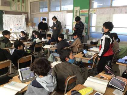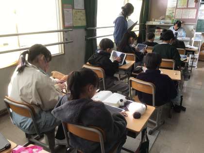 12月18日 研究授業(5年生) 公開日 2025/12/18 更新日 2025/12/18 校長室から 5年生が、国語「大造じいさんとがん」を題材として研究授業を行いました。 自分の考えを発言したり、友達の考えを聞いたりして、登場人物の気持ちの変化を深く考えていました。 皆で考えを出し合いながら物語を読むことで、一人で読むだけでは気づかなかった発見がたくさんありました。