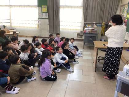 1年生から4年生までの学級では、月に1回「わくわく朝の読み聞かせ」を行っています。