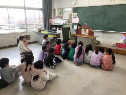 読み聞かせボランティアの皆様が、季節にぴったりの絵本や紙芝居を用意してくださり、楽しく読み聞かせをしてくださっています。また、語りをしてくださることもあります。