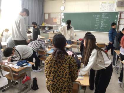 学級活動では、クラスのよいところを考えたり、友達の良さを見つけたりしていました。