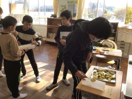 12月22日 いもいも市場(8組) 公開日 2025/12/22 更新日 2025/12/22 校長室から 特別支援学級の子どもたちが、学級園で育てたさつまいもを蒸して味を確かめていました。 「あまくておいしい」と喜んでいました。 先週のいもいも市場で販売したさつまいもも、とてもおいしかったです。
