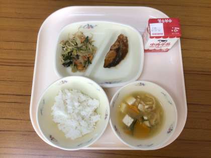 <献立>ごはん、牛乳、ぶりのゆずあんかけ、ごまあえ、かぼちゃのみそ汁