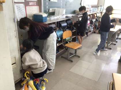4年生は、総合的な学習で取り組んでいる防災についての発表の準備を進めたり、教室の大掃除をしたりして過ごしていました。