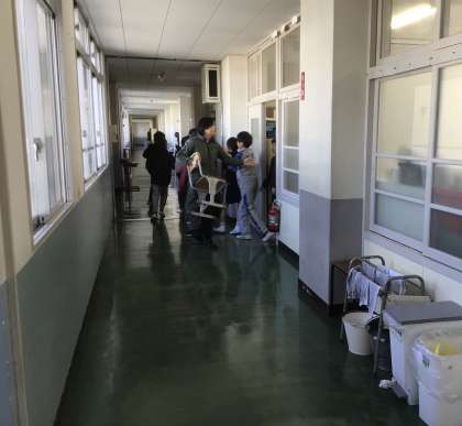 校内に不審者が侵入した場合に安全に避難ができるようにすることを目的として、机や椅子でバリケードを作ったり、隣の学級へ移動したりする訓練を行いました。