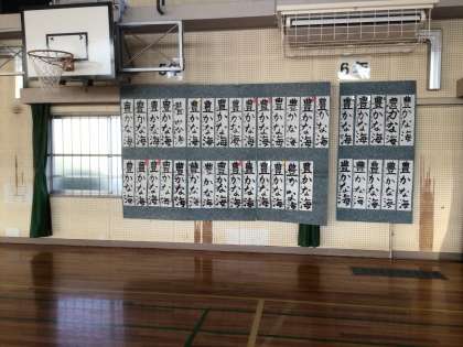 1月14日から16日の日程で、校内書き初め展を本校の体育館で行っています。