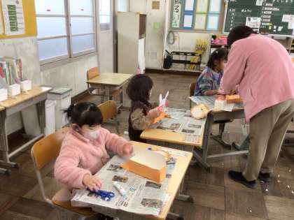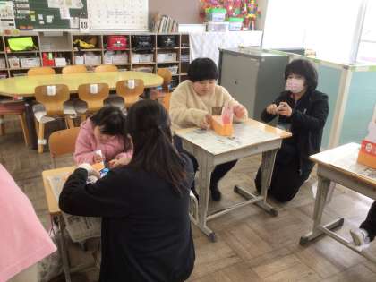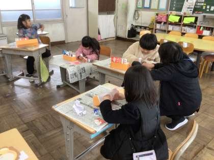 1月15日 図画工作(6組) 公開日 2026/01/15 更新日 2026/01/15 校長室から 6組の子どもたちが、図工で「たまいれゲーム」を作っていました。 紙に糊をつけて牛乳パックに貼る作業に、丁寧に取り組んでいました。 完成後、みんなでたま入れゲームを楽しんでいました。