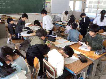 1月20日 生活科(2年生) 公開日 2026/01/20 更新日 2026/01/20 校長室から 2年生は、生活科「青木のすてき大発見」で見つけたことをグループでまとめています。 楽しそうに会話をしながら、たくさんの素敵な発見を文章にしていました。