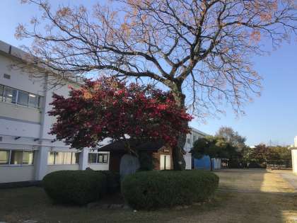 1月21日 校庭の様子 公開日 2026/01/21 更新日 2026/01/21 校長室から 先週は暖かく感じる日もありましたが、昨日からまた寒さが厳しくなっています。 冷たい風の中、中庭の椿の花がきれいに色づいて気持ちを和ませてくれます。校内の藤棚や樹木等、校内整備員さんに手入れをしていただいています。