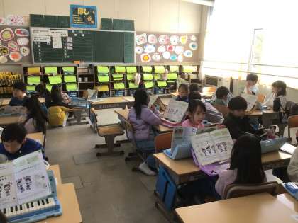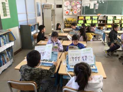 1月22日 音楽科(1年生) 公開日 2026/01/22 更新日 2026/01/22 校長室から 1年生は、音楽「がっきとなかよくなろう」の学習で、鍵盤ハーモニカの練習に励んでいます。グループごとで教え合いながら、リズムよく演奏していました。