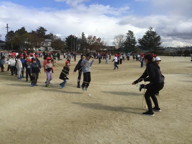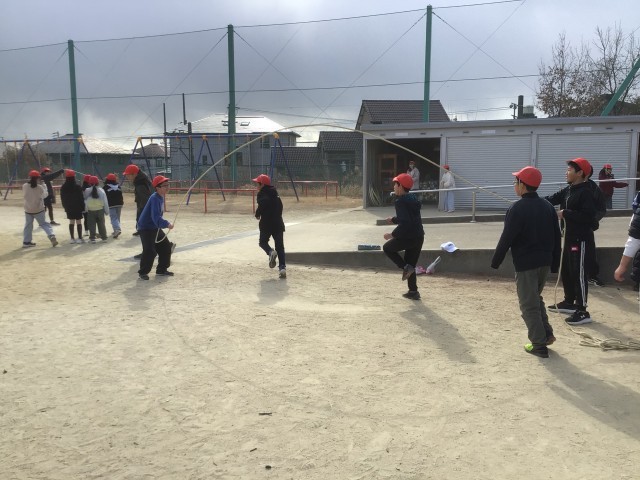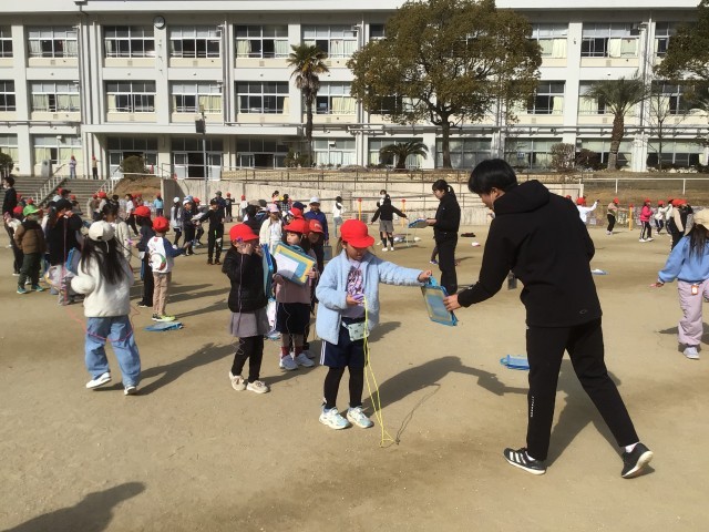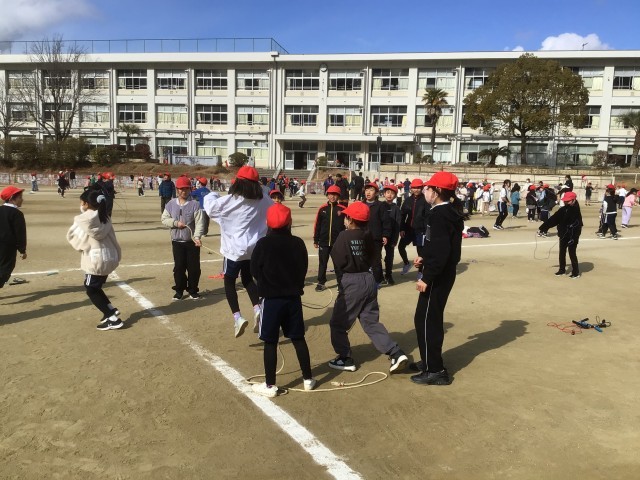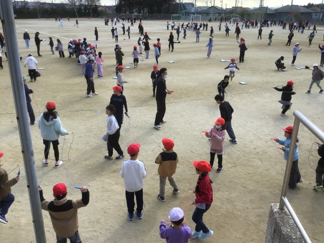 1月29日 なわとび週間 公開日 2026/01/29 更新日 2026/01/29 学校の特色ある活動 今週は「なわとび週間」です。体育委員会の子どもたちが、「今週は、他の遊びはやめて、みんなでなわとびをしよう」と、毎日放送で呼びかけてくれ、昼のふれあいタイムには、たくさんの子がなわとびをしています。自分で技を練習したり、グループで8の字跳びをしたりしています。担任も一緒になって遊んでいます。寒さに負けず、元気に体を動かしています。 +3