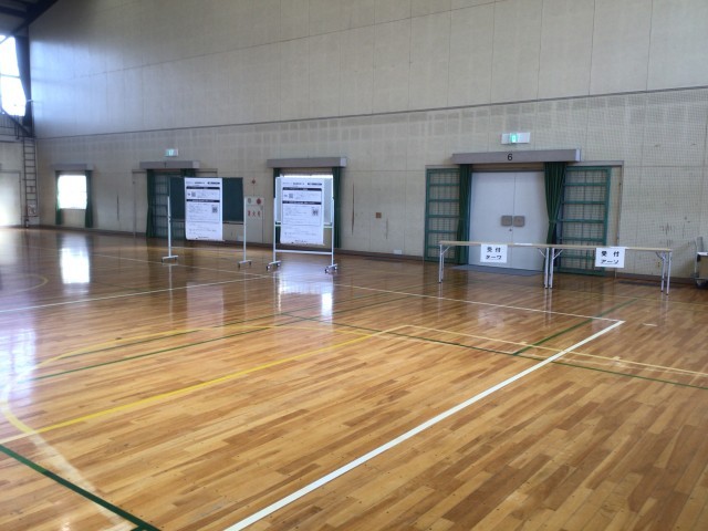 午前中、体育館で来年度の新1年生の入学説明資料配付会を実施しました。