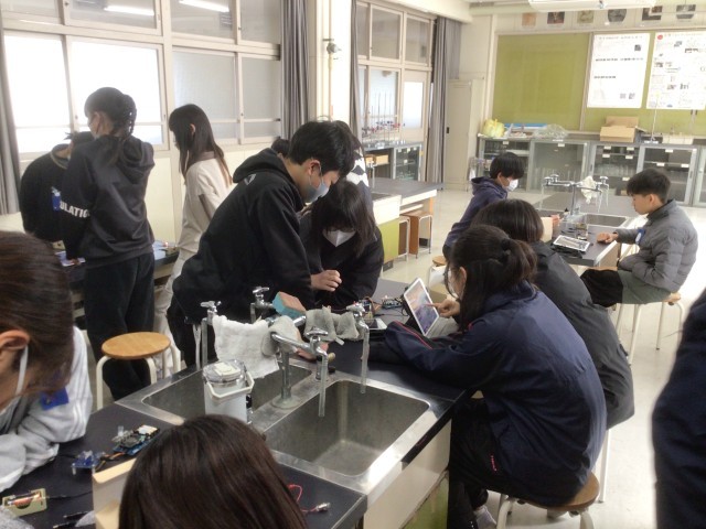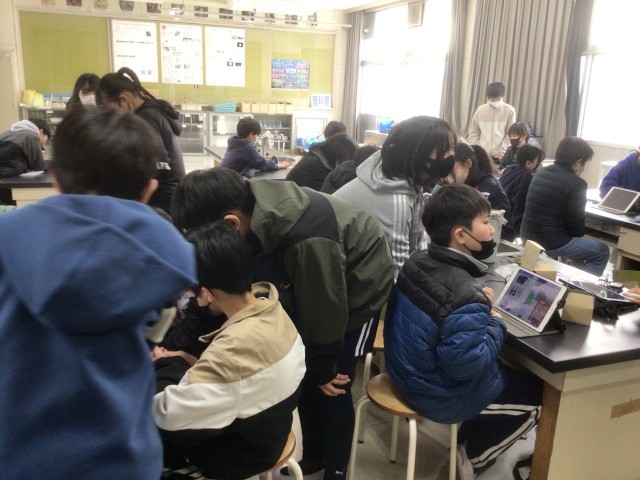 2月5日 理科(6年生) 公開日 2026/02/05 更新日 2026/02/05 校長室から 6年生は、理科で「私たちの生活と電気」の学習をしています。今日は、電気の制御技術を学ぶプログラミングに取り組んでいました。人感センターとマイクロビットを活用し、条件に合わせて豆電球をつけたり、音楽を演奏したりする仕組みを制作していました。子どもたちの技能の高さに脱帽でした。