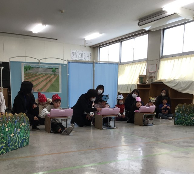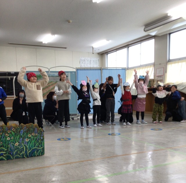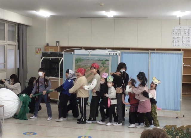 特別支援学級では、「おおきなかぶ」のお話を、力を合わせて楽しく演じました。