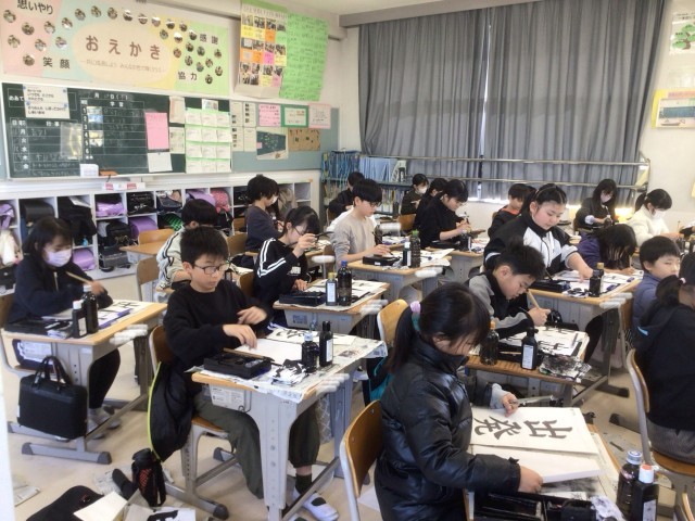 2月19日 学習の様子(4年生) 公開日 2026/02/19 更新日 2026/02/19 校長室から 4年生は、外国語活動で「This is my day」の学習をしています。自分の1日の生活をまとめたカードで、グループごとに英語で紹介をし合っていました。習字では「出発」の文字を、姿勢よく丁寧に練習していました。 +1
