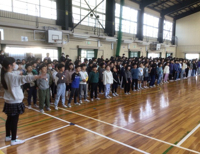 昨日は、5年生の呼びかけで、体育館に集まって6年生を送る歌を全員で合唱してみました。