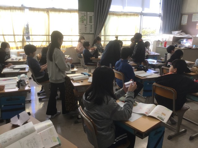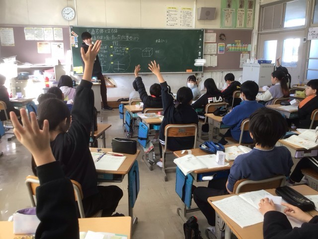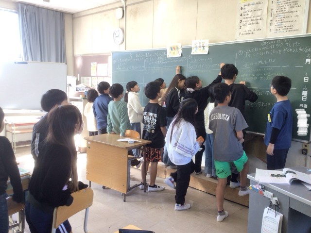 3月4日 学習の様子(4年生) 公開日 2026/03/04 更新日 2026/03/04 校長室から 4年生は、道徳「わたし まちがってる?」の学習で、自分の考えをそれぞれ黒板に書いて発表していました。算数では、直方体について学習しています。面と面の関係について、見つけたことを発表していました。 +1
