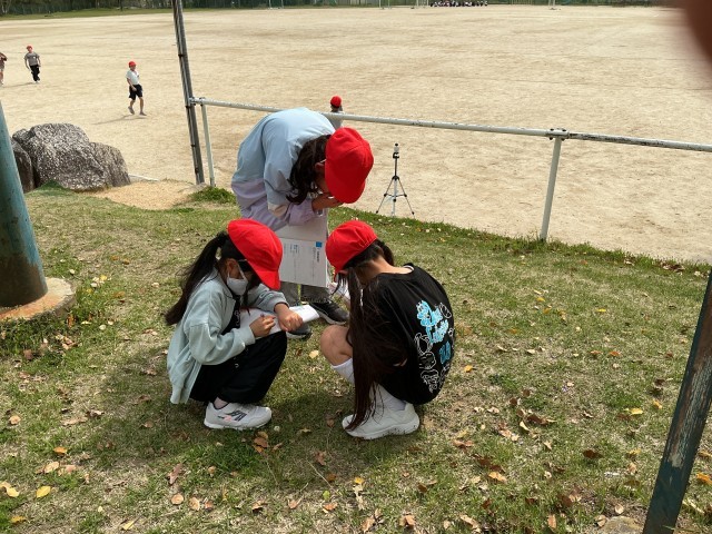 4月14日 学習の様子(4年生) 公開日 2026/04/14 更新日 2026/04/14 校長室から 4年生が校庭や花壇の周りで、春見つけをしていました。「この花はなんていう名前かな」「テントウムシがいたよ」等、楽しそうにお話をしながら、見つけたものをノートに書いていました。