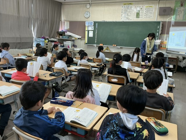 4月16日 学習の様子(3年生) 公開日 2026/04/16 更新日 2026/04/16 校長室から 3年生は、外国語活動と国語の学習をしていました。外国語では、ALTのドレア先生と様々な国のあいさつを学習しました。国語では、音読の練習に励んでいました。