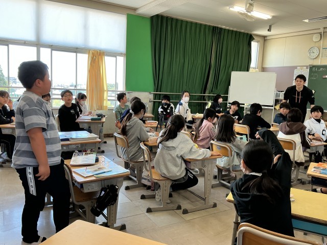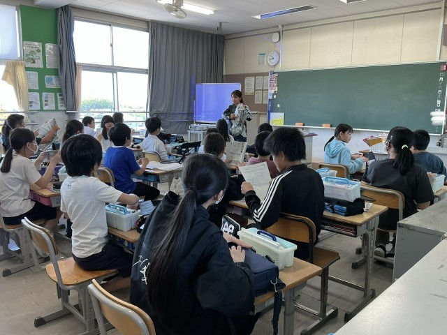 6年生は、青木の町の様子を話し合ったり、図工で絵の具の準備をしたりしていました。